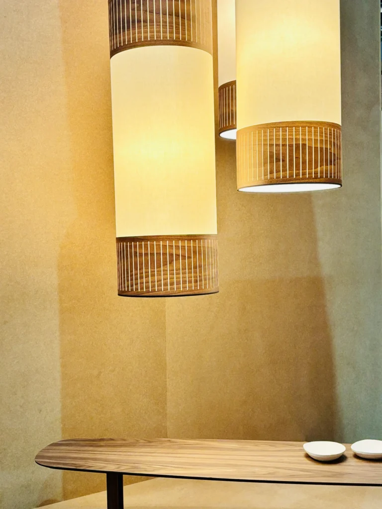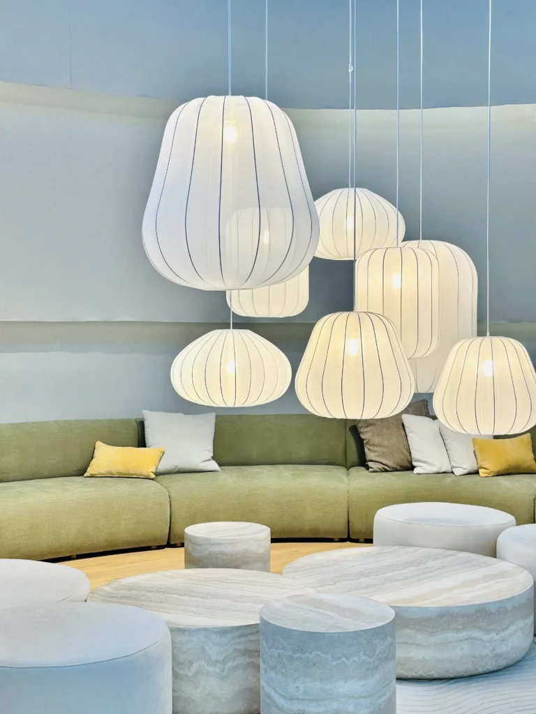 So many booths used natural textures: linen, rattan, wood, clay, wool. The look is warm and relaxed, but still elegant. Lighting followed the same idea: paper shades, diffused glow, and less glare. Spaces made to live in, not to impress.